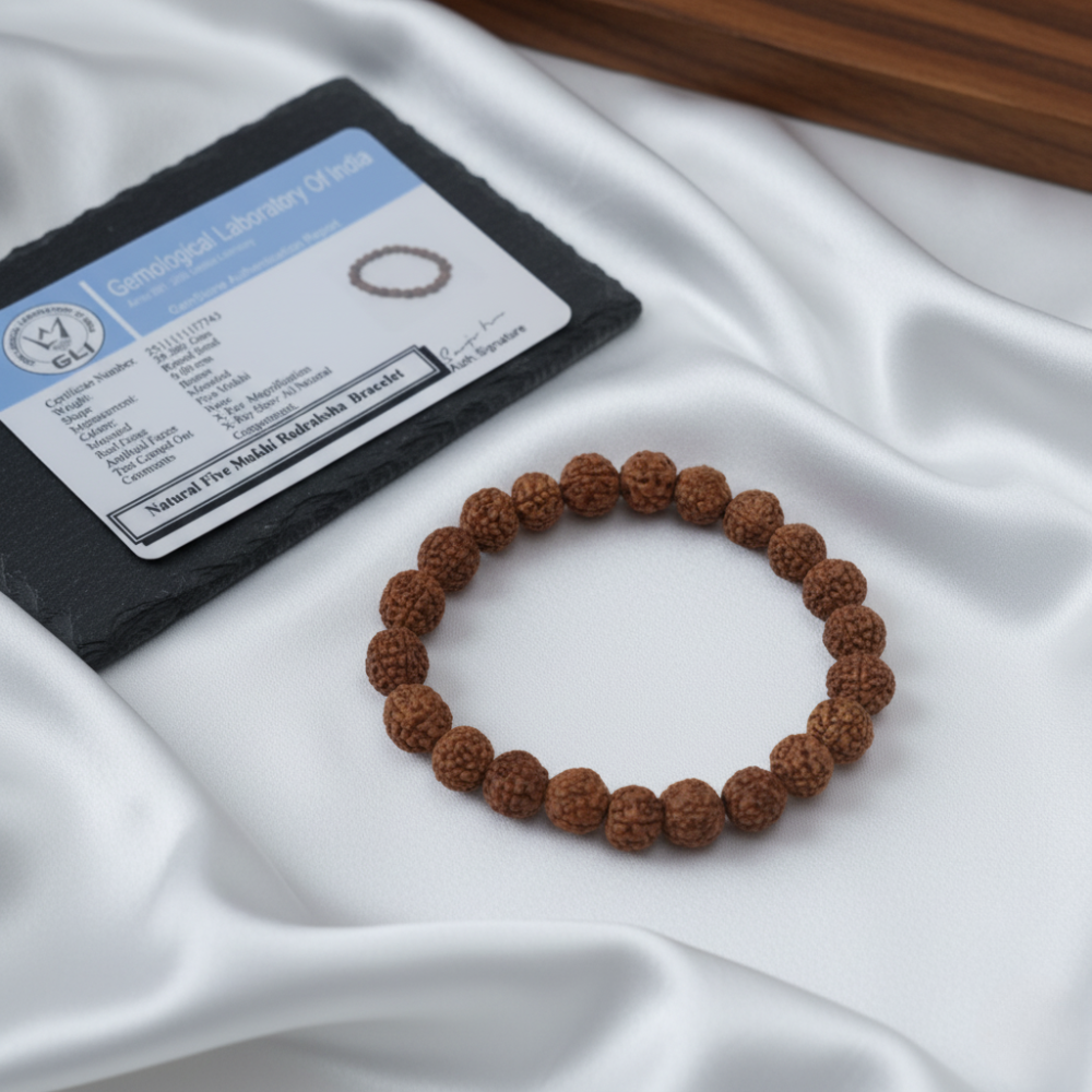 5 Mukhi Rudraksha Bracelet Certified