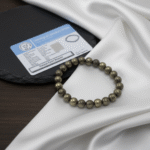 Our bracelet features 8mm genuine pyrite beads that showcase the stone’s distinctive metallic surface with subtle iridescent shimmer. Each 100% natural crystal stone is carefully selected for its quality, smoothness, and powerful grounding properties. The 8mm size provides a substantial, masculine presence that makes a subtle yet sophisticated statement. The sleek color with metallic luster creates a modern, minimalist aesthetic that pairs beautifully with any outfit – from business attire to casual wear. The smooth, polished finish feels comfortable against your skin and adds a touch of elegance to your wrist without being flashy or attention-seeking.