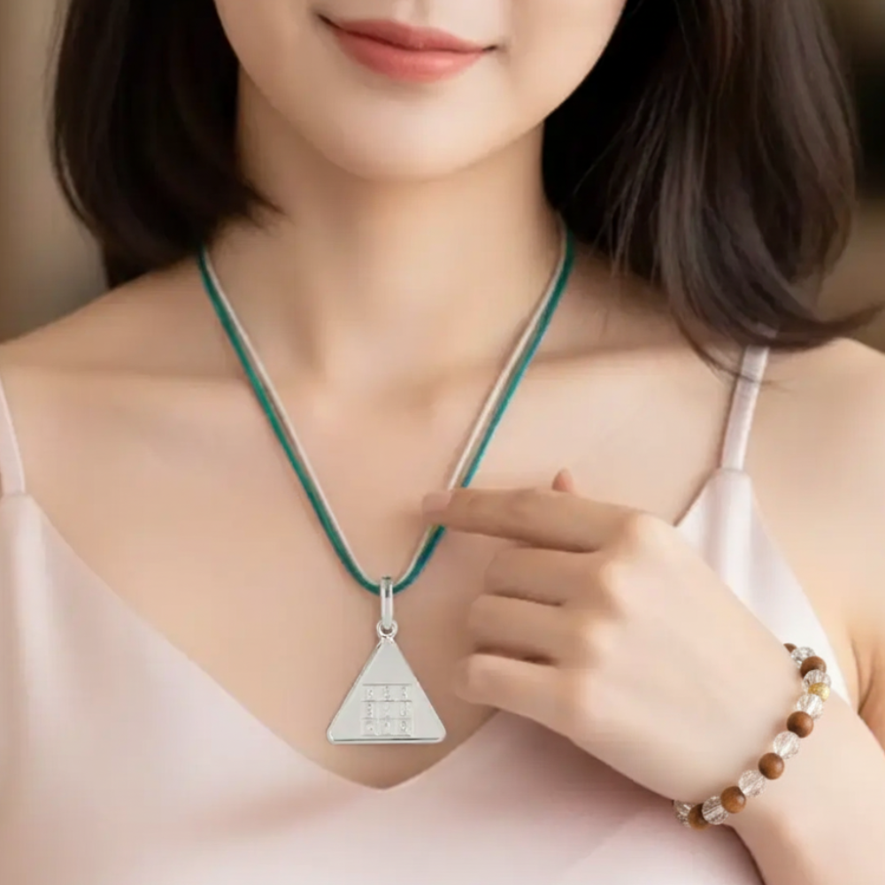 Its elegant triangular (Pyra) design symbolizes stability, balance, and the harmonious alignment of cosmic energies. The finely finished diamond-cut surface adds a premium, radiant touch, making the locket visually striking while remaining spiritually powerful. Designed as a unisex accessory, it effortlessly complements both traditional and contemporary styles.