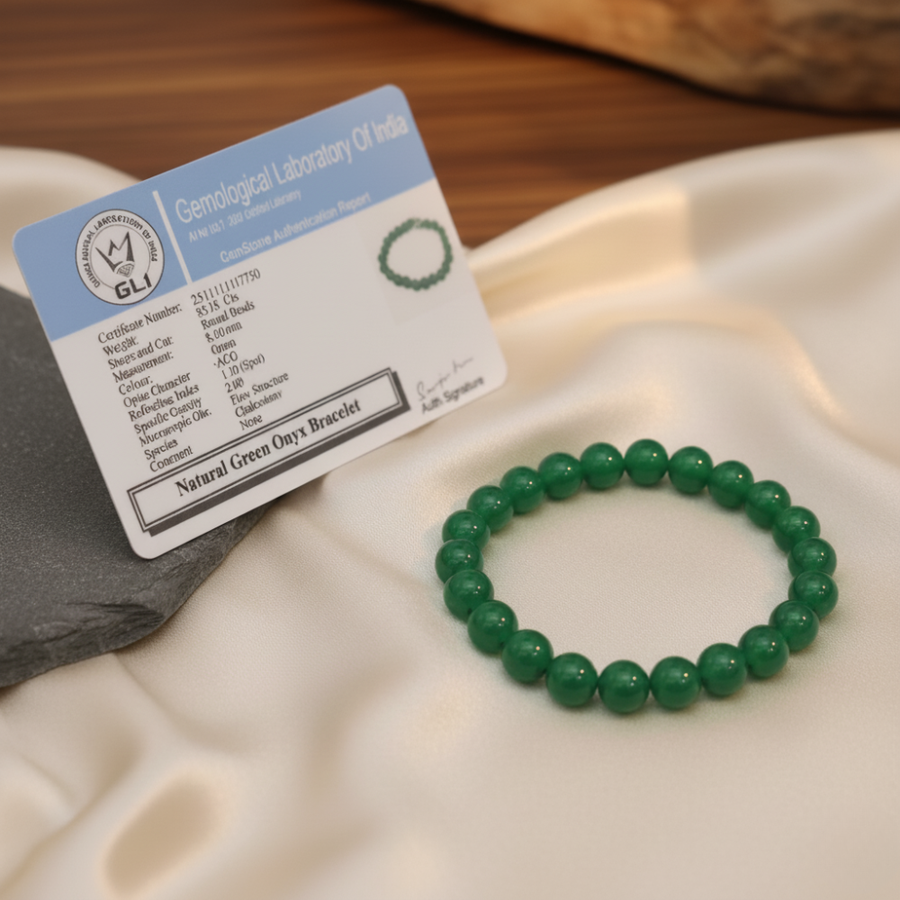 The calming green shade feels so soothing. Wearing this bracelet genuinely brings a peaceful vibe. Loved it!