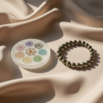Complementing the bracelet is a Natural Selenite charging plate, carefully crafted to support crystal cleansing and chakra alignment. Made from genuine Selenite crystal, the plate is engraved with colorful seven-chakra symbols and features a meditating figure at the center, symbolizing harmony, mindfulness, and spiritual alignment.