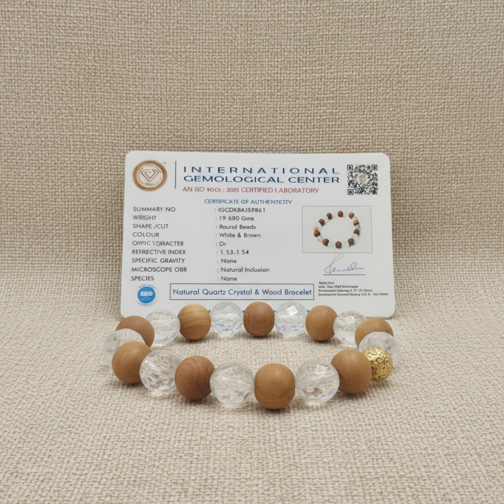 The Certified Wood Crystal Bracelet with Diamond Cut by Trishakti Products is a thoughtfully designed accessory for men and women who appreciate natural elegance and meaningful craftsmanship. Created to suit everyday wear as well as special occasions, this bracelet combines refined aesthetics with premium-quality materials.